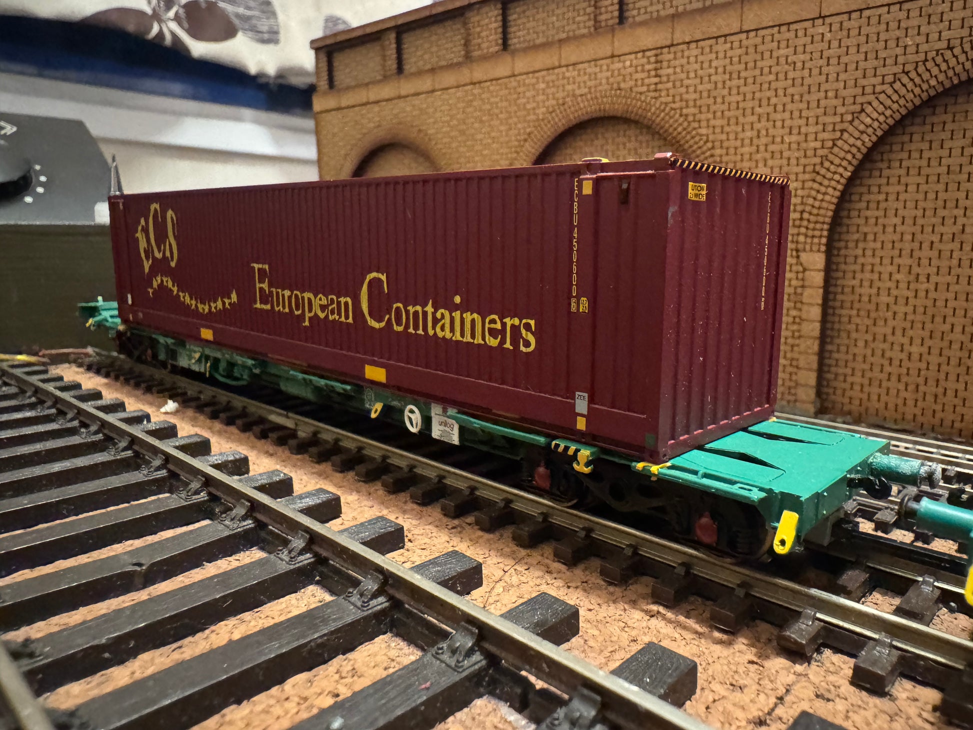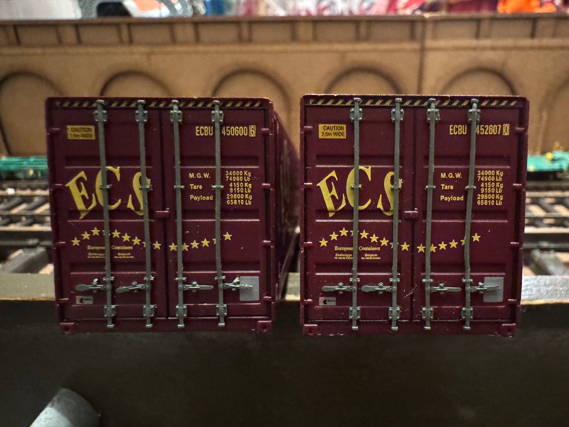 Both wagons roll. They come with special coupling connection. Both the wagons and containers are highly detailed. ECS containers numbers are 450600 & 452607.