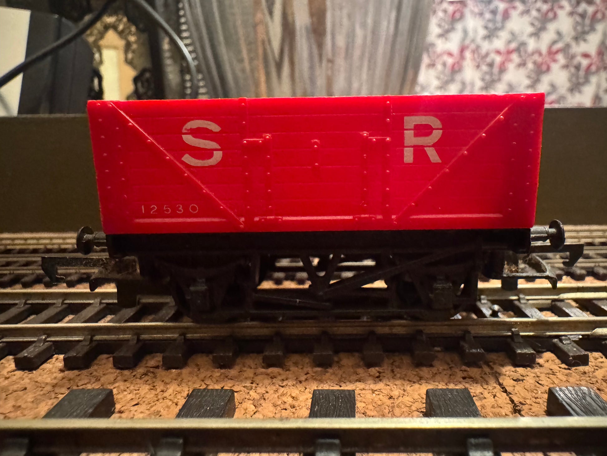 Yes, the Southern did paint some wagons red. This a very old model. It does roll okey. The plastic is quite thin but rigid. A perfect wagon for Tri-ang Hornby collector, a beginner or someone who wants a wagon chassis.