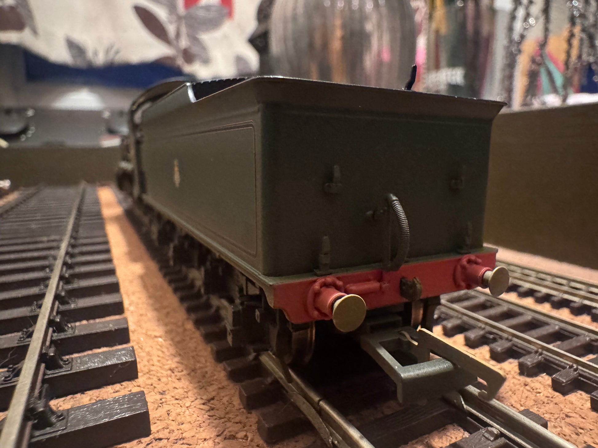 A really good model, and nicely weathered from factory. The model runs well, and is as new. Unopened detail pack. Simple tender connection no plug socket. Tender pickups via a live drawbar. sprung buffers, and highly detailed.
