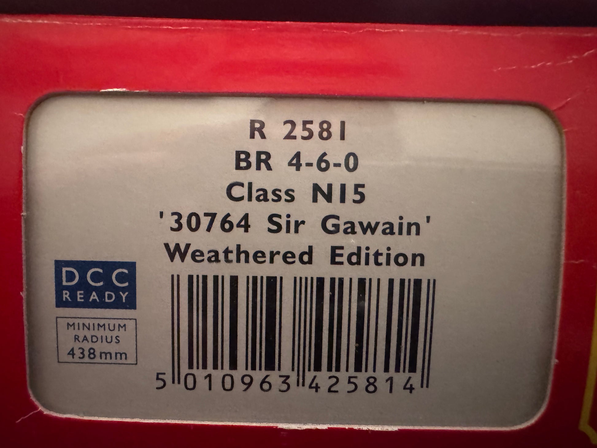Hornby R2581 (OO) Ex SR, N15 ‘King Arthur’ No.30764 “Sir Gawain” in Weathered British Railways Lined Passenger Green. DCC Ready. (Shed Code 73A, Stewart’s Lane Depot).