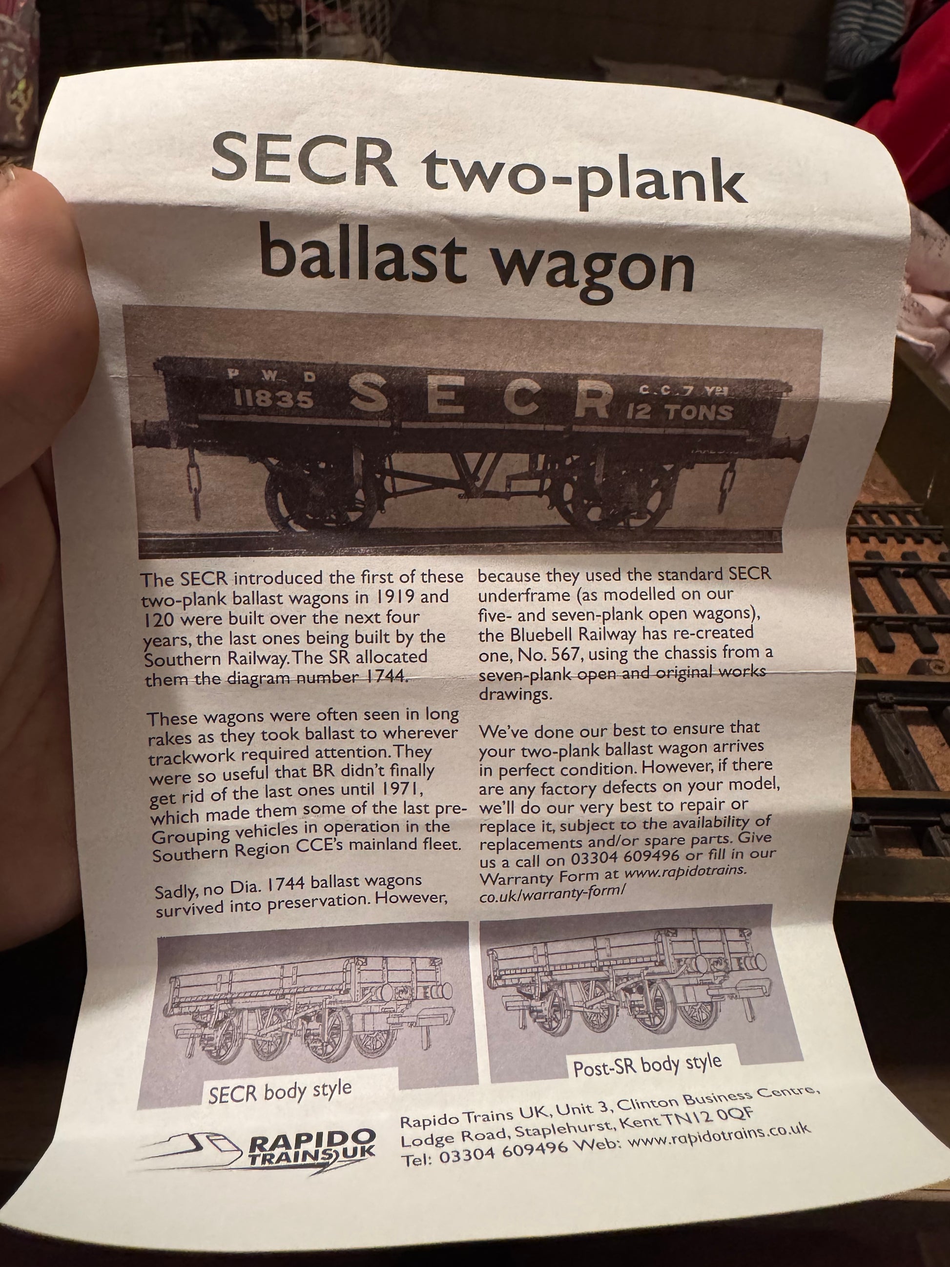 Rapido 928007 (OO) Ex SECR Two Plank Open Ballast Wagon No.62466 in Southern Railway post 1936 Red Oxide.