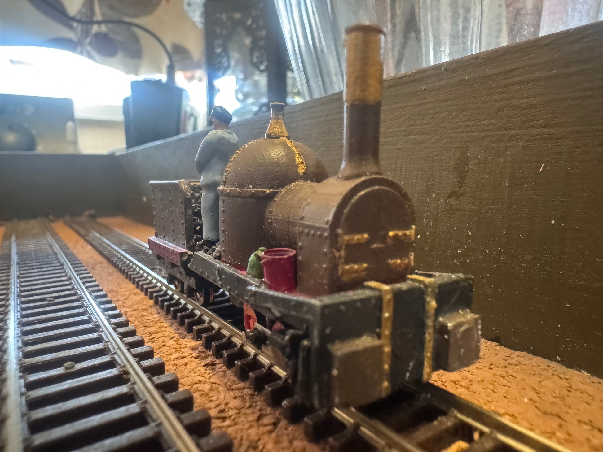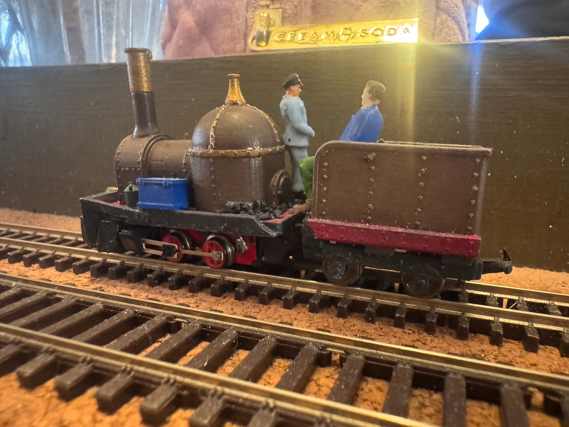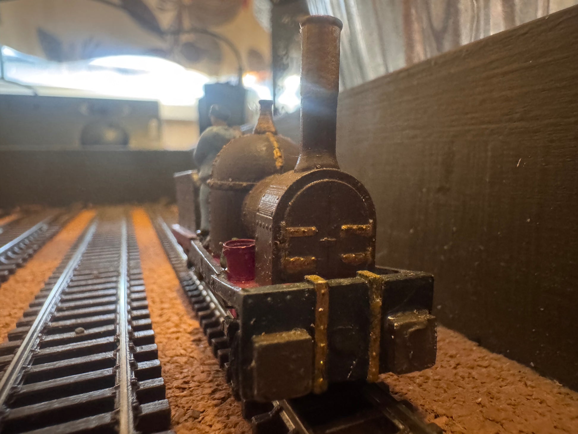 Runs well. The model uses the TU-Koopel-Red Chassis. 3D printed body. Tender Rolls well. I really enjoy this model as I think it represents well the development of early steam locos. The model has been made to show that over its life it’s been modified in the field. Such as the raised and reinforced front buffer beam. Like many of early steam locos which did change appearance over the years.